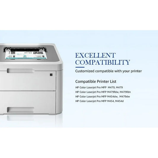 (NO CHIP) HaloFox Compatible Toner Cartridge M479fdn M454dn Toner Printer (Black Cyan Yellow Magenta,4-Pac
